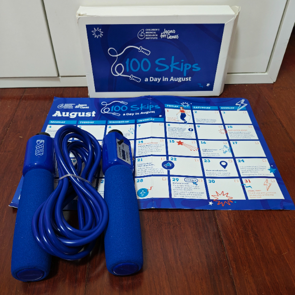 First trial run. Only managed 10 skips today. Not bad considering I went through 8 hrs chemo yesterday.100 skips in August