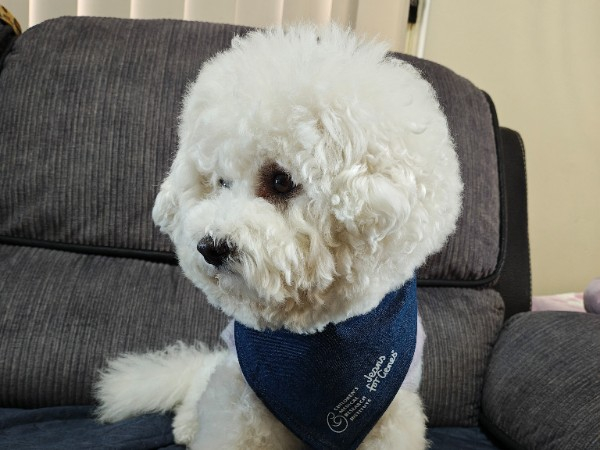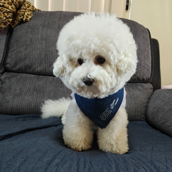 Bubbles is proudly wearing her Jeans for Genes bandana.Merchandise
